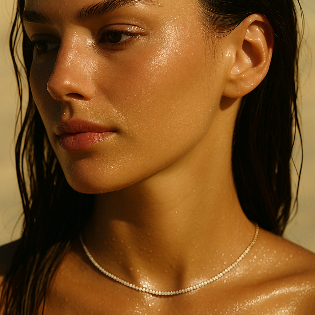 Diese raffinierte und elegante einreihige Zirkonkette verleiht jedem Look einen subtilen und dennoch strahlenden Akzent. Perfekt für besondere Anlässe oder den Alltag.
