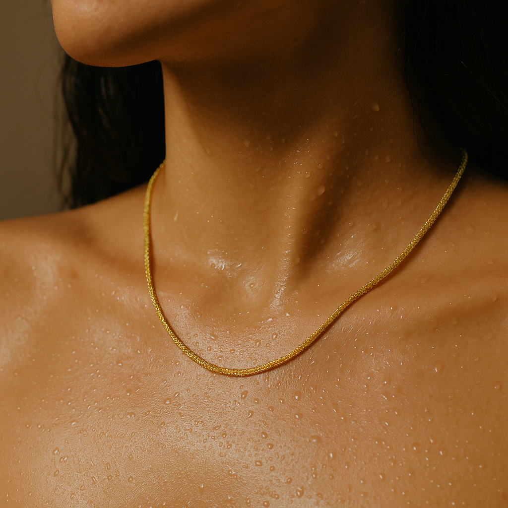 • Hochwertiger medizinischer Stahl + 18K PVD-Vergoldung
