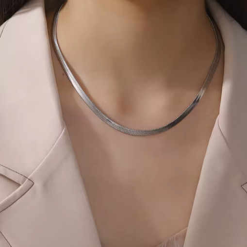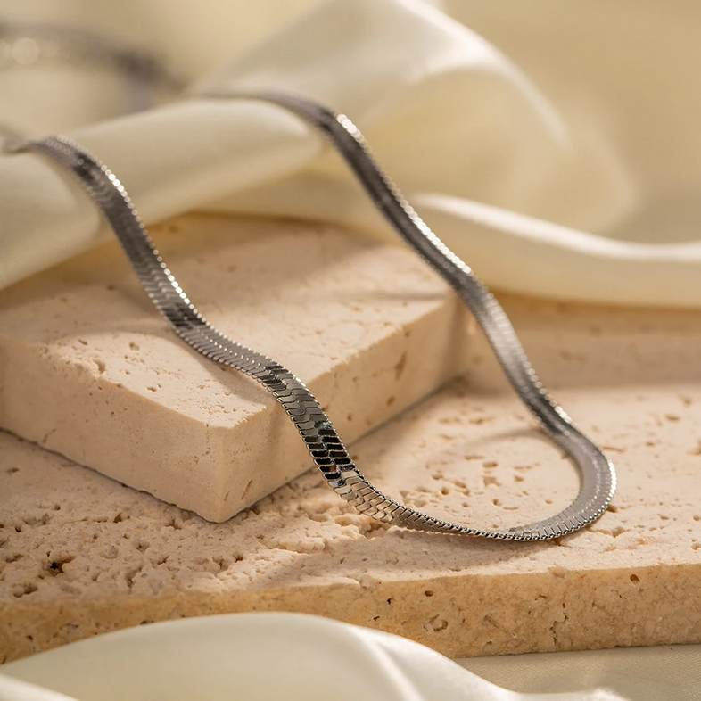 Eine elegante Halskette im Fischgrätenmuster, die sich geschmeidig um den Hals legt und ein Gefühl von Luxus und Eleganz vermittelt. Die perfekte Wahl für den Alltag und besondere Anlässe. Ein minimalistisches und dennoch markantes Design, das durch Brillanz und nicht durch Worte spricht.