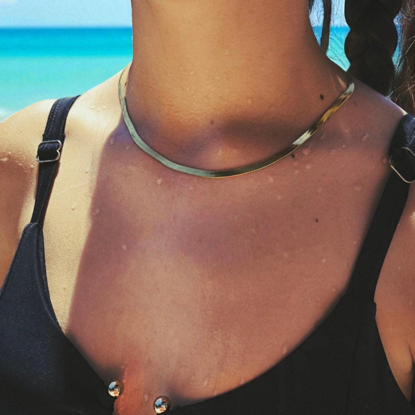 This message only appears in theme editor.Eine elegante Halskette im Fischgrätenmuster, die sich geschmeidig um den Hals legt und ein Gefühl von Luxus und Eleganz vermittelt. Die perfekte Wahl für den Alltag und besondere Anlässe. Ein minimalistisches und dennoch markantes Design, das durch Brillanz und nicht durch Worte spricht.