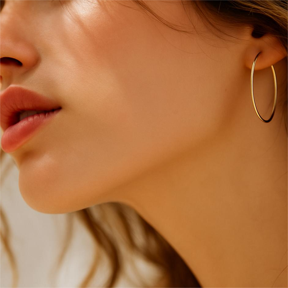 Klassische „Valentine“-Creolen mit einem beeindruckenden Durchmesser von 50 mm – auffällig, elegant und immer aktuell. Sie verleihen jedem Look Charakter und Stil und werden zum Hauptakzent, egal ob Sie sie im Alltag oder zu einem besonderen Anlass tragen.