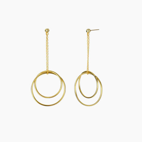 Elegante Ohrhänger, die mit einer feinen Kette beginnen, die zwei anmutige Kreise sanft verbindet. Mit ihrer länglichen Silhouette und dem klaren Design vermitteln sie ein Gefühl von Leichtigkeit und Weiblichkeit. Passend für alle Anlässe – vom Alltag bis zu besonderen Momenten.