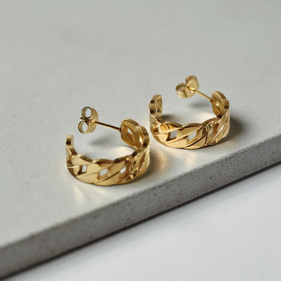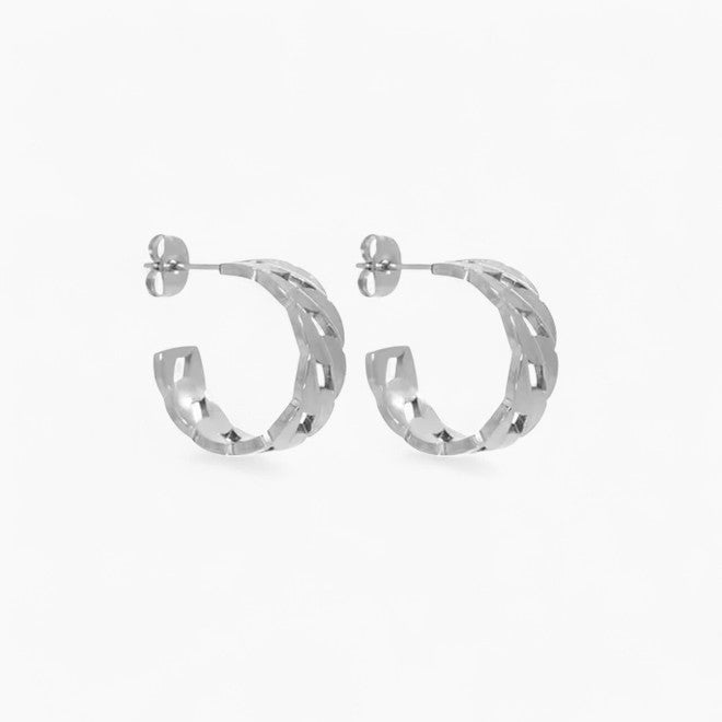 Moderne Cuban Link Ohrringe – ein mutiger und eleganter Akzent für jeden Look. Das Design kombiniert die klassische Creolenform mit dem modernen Cuban Link und verleiht ihm einen einzigartigen Charakter und Look. Geeignet für den Alltag und besondere Anlässe.
