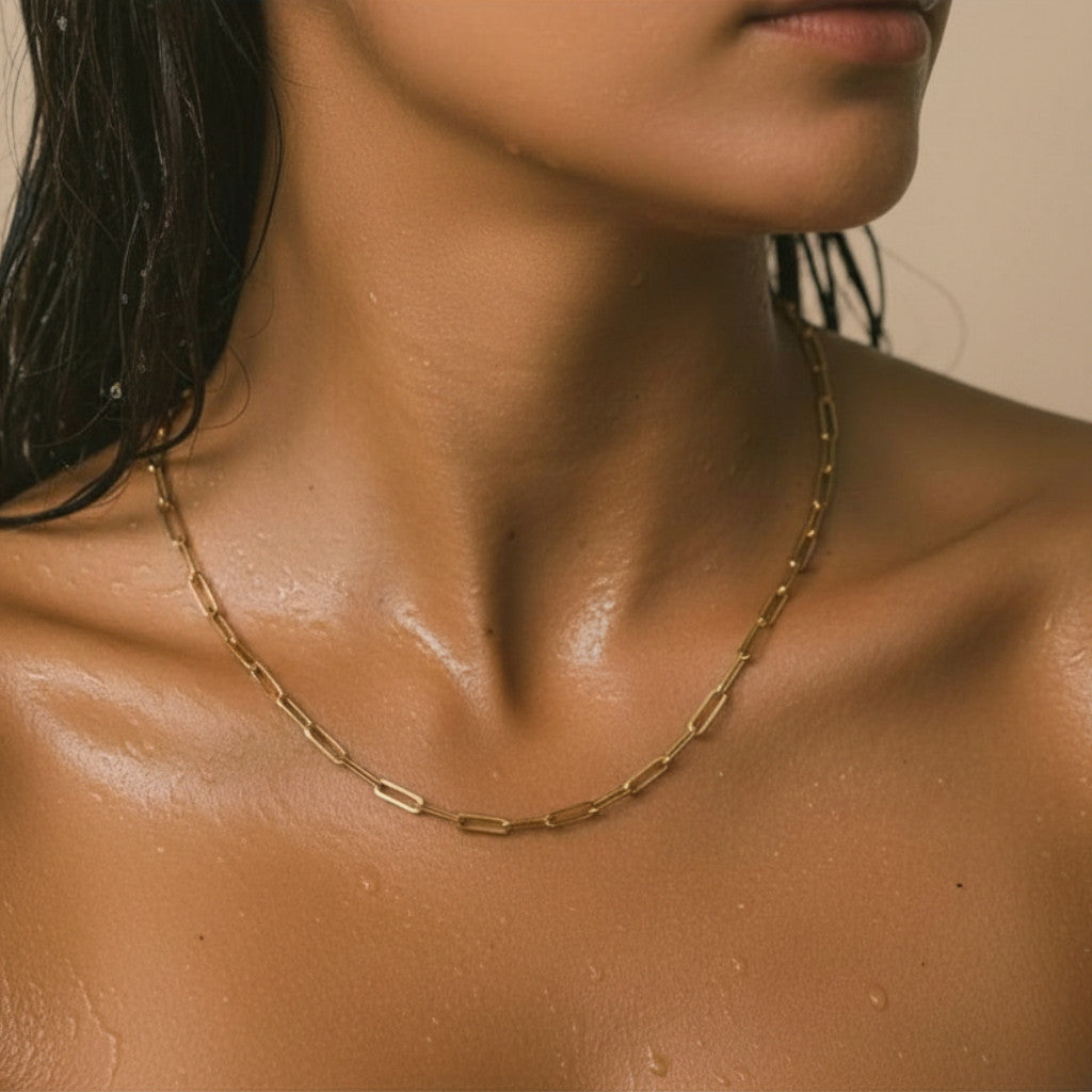 Stilvolle Halskette mit Büroklammergliedern, die jedem Outfit einen modernen und eleganten Look verleiht. Hergestellt aus hochwertigen Materialien, bequem für den Alltag und widerstandsfähig gegen äußere Einflüsse. Erhältlich in zwei Größen und sowohl für Damen als auch für Herren geeignet.