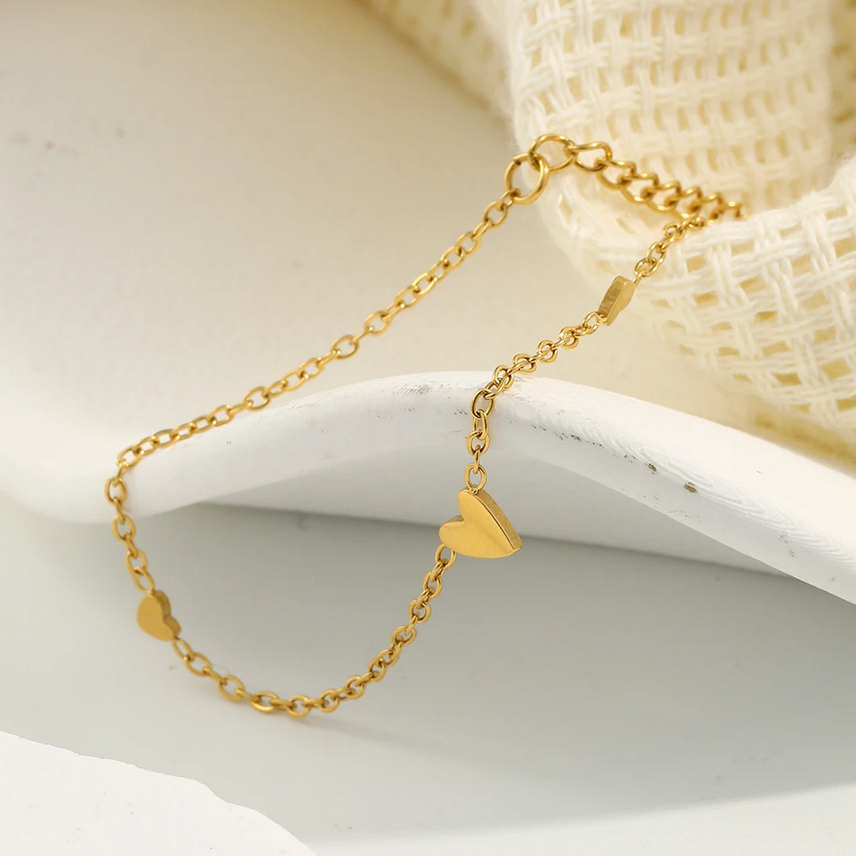 Амара е фина и елегантна гривна с деликатна верижка и малки акценти сърца, които придават мек блясък на китката. Минималистичният ѝ дизайн я прави лесна за комбиниране — подходяща както за ежедневно носене, така и за по-нежна акцентна визия. Лека и удобна, тя стои естествено и подчертава женствеността без излишна тежест.