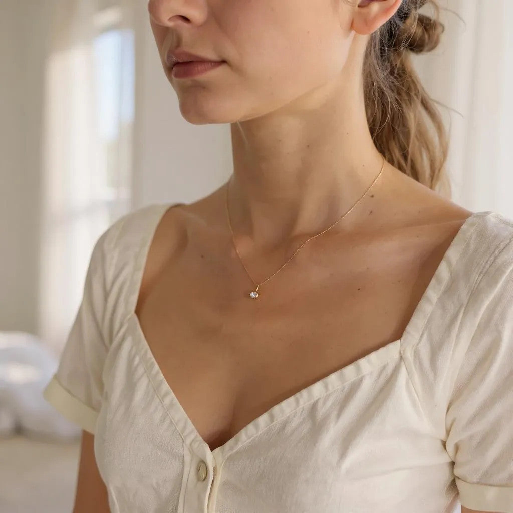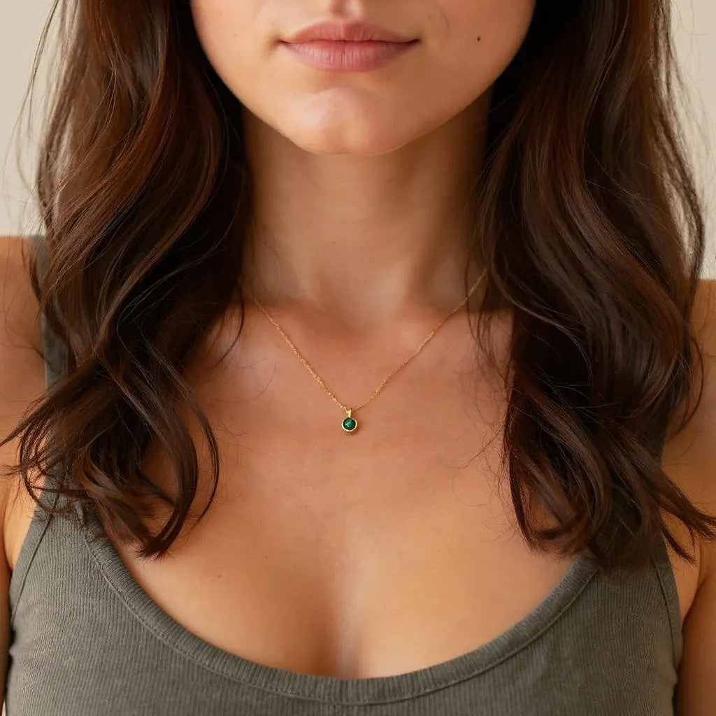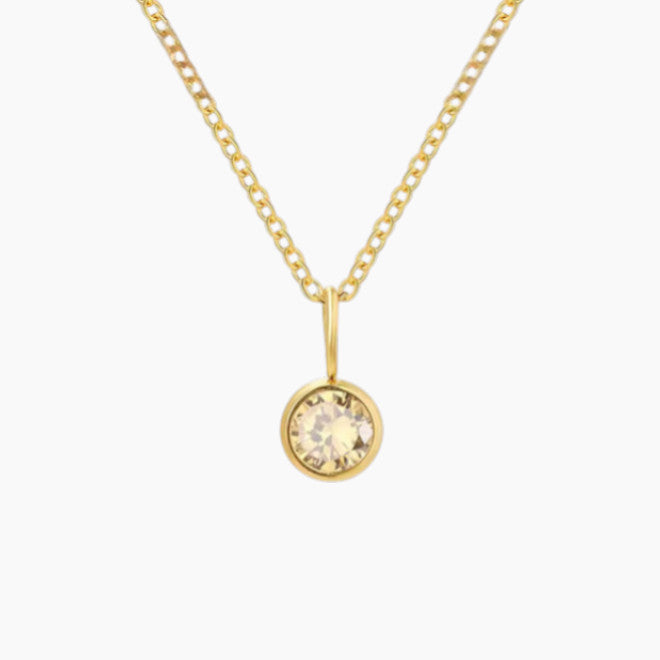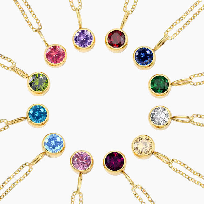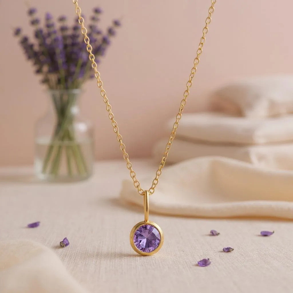 Фино и нежно колие с кръгла висулка с кристал в цвета камъка на вашия рожден месец – символичен и стилен акцент, който Ви свързва със зодията Ви и носи лично значение.