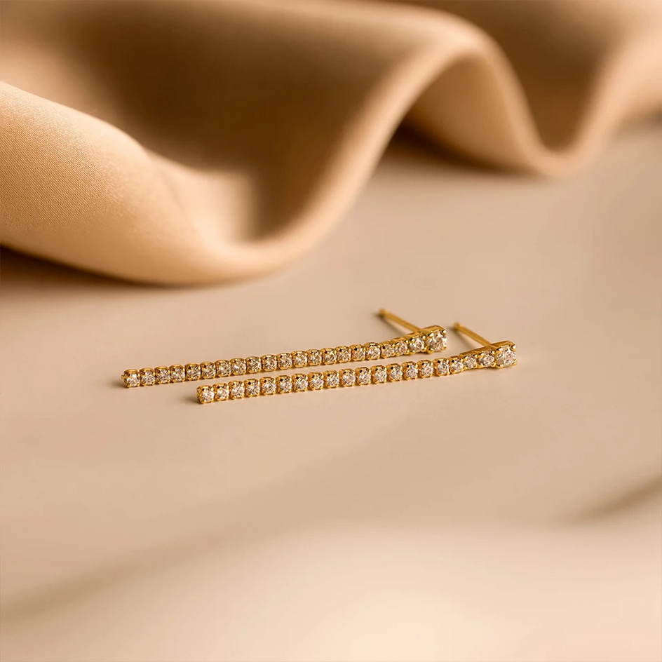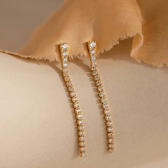 Елегантни и изящни, тези обеци с циркони в една редица добавят изтънчен блясък към всяка визия. С дължина 5 см, те създават усещане за финес. Подходящи както за ежедневие, така и за специални поводи, те са перфектният избор за модерната и уверена жена.
