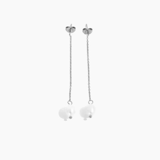 Изискани и деликатни, тези обеци с фина верижка и сладководна перла придават елегантност и меко излъчване на всяка визия.
