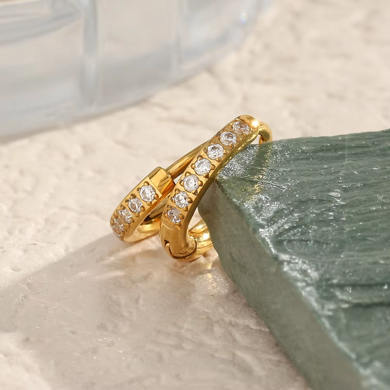 Дискретен блясък с елегантен силует – тези обеци са изящно инкрустирани с циркони, които улавят светлината при всяко движение.