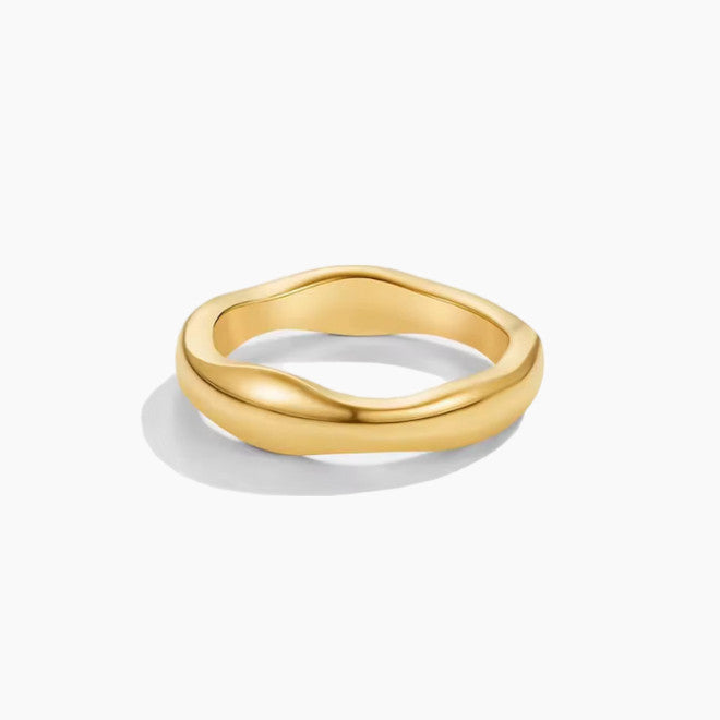 Елегантен и модерен пръстен с неправилна вълнообразна форма, който придава деликатен блясък и динамичен акцент към всяка визия. Минималистичен, но със собствен характер – перфектен за ежедневието или в комбинация с други пръстени за стилен layering ефект.