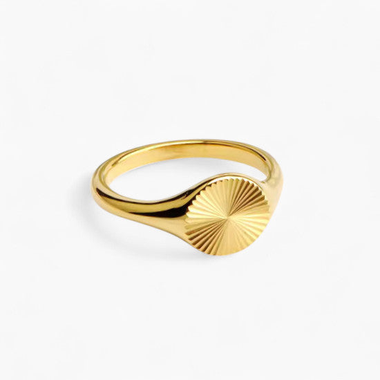 Елегантен пръстен с изчистен слънчев мотив, който придава усещане за топлина и светлина. Дизайнът е вдъхновен от слънцето – символ на енергия и ново начало. Подходящ за ежедневието или като акцент към специален повод.