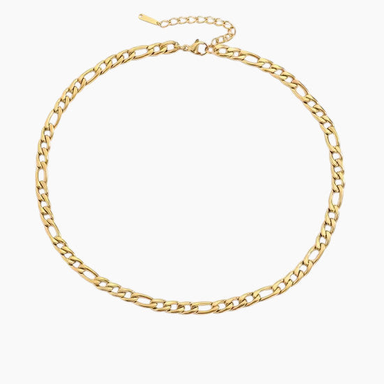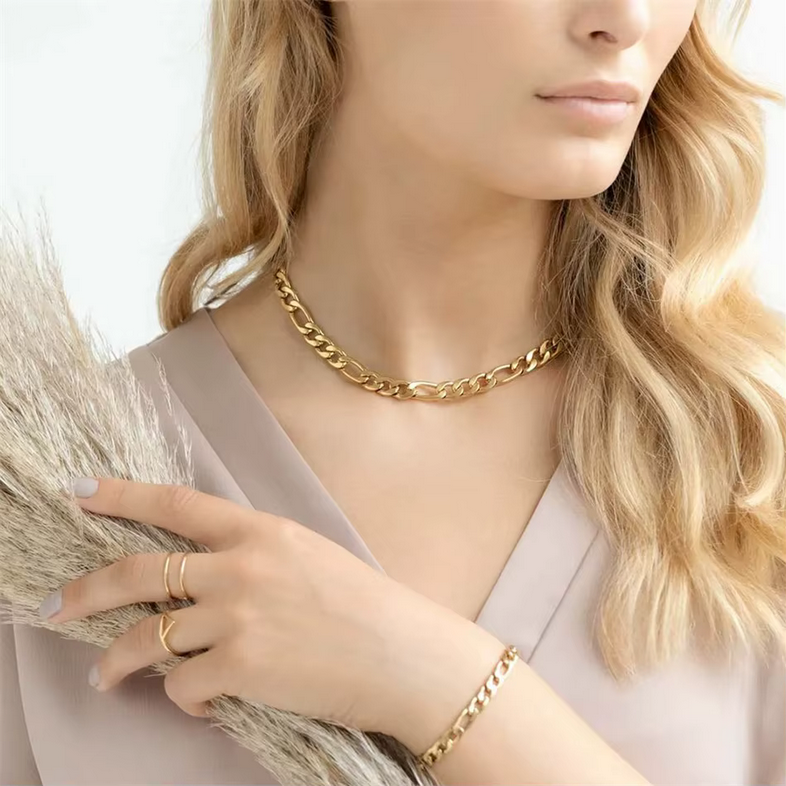 Стилен унисекс кубински чокър, изработен от висококачествена неръждаема стомана с 18К PVD златно покритие. Предлага се в ширини 4 мм, 6 мм, 8 мм и 10 мм и различни дължини за перфектно прилягане.